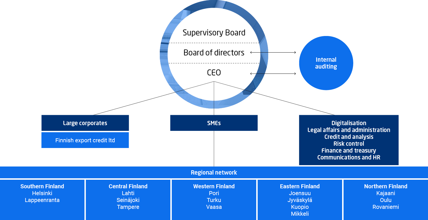 Responsibility for Finnvera’s governance and operations is vested in the General Meeting of Shareholders, the Supervisory Board, the Board of Directors, and the Chief Executive Officer.