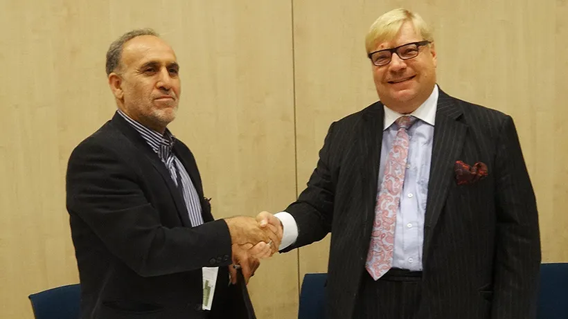 The picture shows Managing Director of EGFI, Seyed Kamal Seyed Ali (on the left) and Topi Vesteri in the signing ceremony.