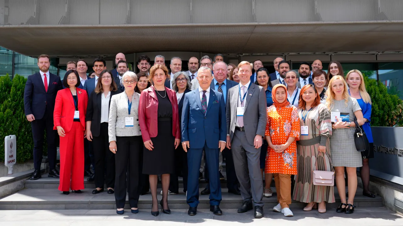 Turkin Global Sustainable Construction Forum kokosi yhteen suomalaisia vientiyrityksiä, turkkilaisia yrityksiä ja kansainvälisiä rahoittajia, joilla on kiinnostusta kehittää infrastruktuuria Afrikan ja Aasian maissa. Eturivissä vasemmalta Senior Director Mirja Kaarlela Business Finlandista, osastopäällikkö Begüm Aydınlı Turkin kauppaministeriöstä, Turkish Contactors Associationin johtaja Erdal Eren ja Finnveran liiketoimintajohtaja Jussi Haarasilta.