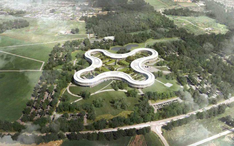 Kuvateksti: Havainnekuvan sairaala nousee Hillerødiin Pohjois-Sjellantiin. Kuva: © Herzog & de Meuron - Vilhelm Lauritzen Arkitekter.