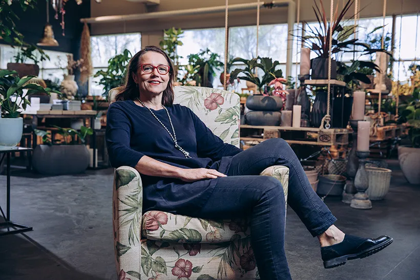 Garden Living Oy:n luova johtaja Eva Wuite kertoo alkutakauksen auttaneen yritystä kasvamaan. Yritys tarjoaa maisemasuunnittelua ja puutarhuripalveluita sekä myy viherkasveja ja leikkokukkia.