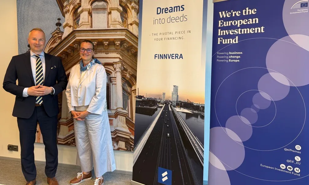 Finnveran toimitusjohtaja Juuso Heinilä ja Euroopan investointirahaston (EIR) toimitusjohtaja Marjut Falkstedt.