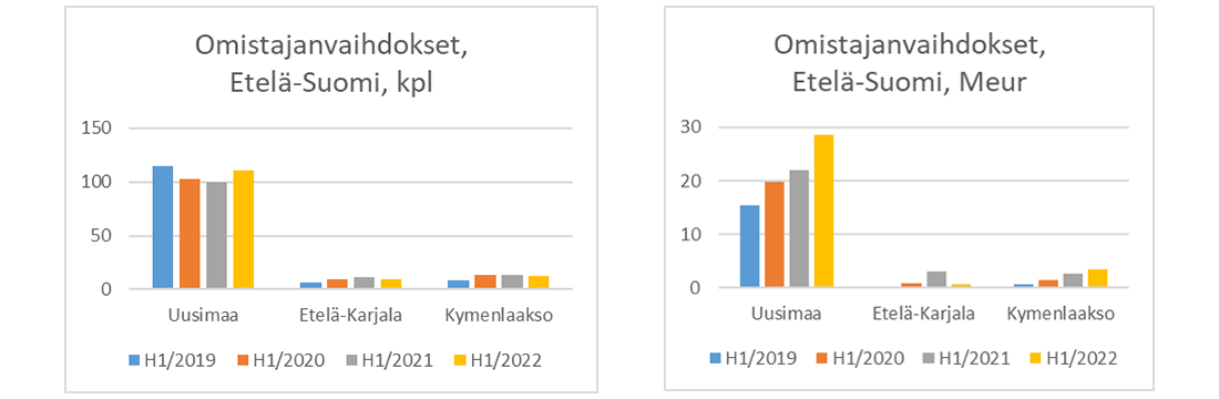 Etelä-Karjalassa omistajanvaihdosaktiivisuus puolestaan tasaantui ennätysvuoden 2021 jälkeen. Alkuvuoden taloudellinen ja poliittinen tilanne saattaakin näkyä alueen omistajanvaihdosmarkkinassa.
