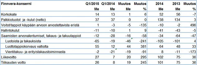 Finnvera-konsernin osavuosikatsaus tammi-maaliskuu 2015