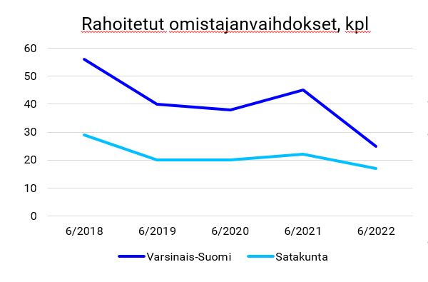 Finnveran rahoittamien yritysten omistajanvaihdosten lukumäärä on alhaisimmalla tasolla vuosiin etenkin Varsinais-Suomessa, missä laskua edellisvuoteen verrattuna oli 44 prosenttia. Satakunnassa Finnveran rahoittamat omistajanvaihdokset vähenivät 23 prosenttia. Pääsyy liittynee talouden epävarmuuteen.