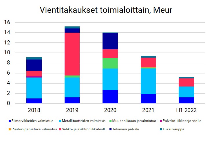 Vuosi 2022 ei ole tuonut vielä piristystä viennin rahoituksen volyymeihin. Pohjois-Suomessa myönnettiin vientitakauksia 5,2 miljoonan euron arvosta, mikä on pitkälti viime vuoden lukujen tahdissa, mutta edelleen kaukana vuosien 2019 ja 2020 viennin rahoituksen volyymeista.