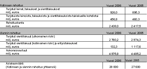 Yhtiön strategian mukaisesti rahoitustoiminta painottui vuonna 2006 riskinottoon erilaisissa muutostilanteissa olevista yrityksistä sekä kansainvälisesti kilpailukykyisen vienninrahoitusjärjestelmän kehittämiseen.