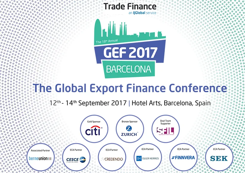 Finnvera toimii syksyllä Barcelonassa, Espanjassa järjestettävän kansainvälisen vienninrahoitusseminaarin ECA partnerina eli vientitakuulaitosyhteistyökumppanina. Global Export Finance -konferenssi (GEF) järjestetään 12.–14. syyskuuta 2017.