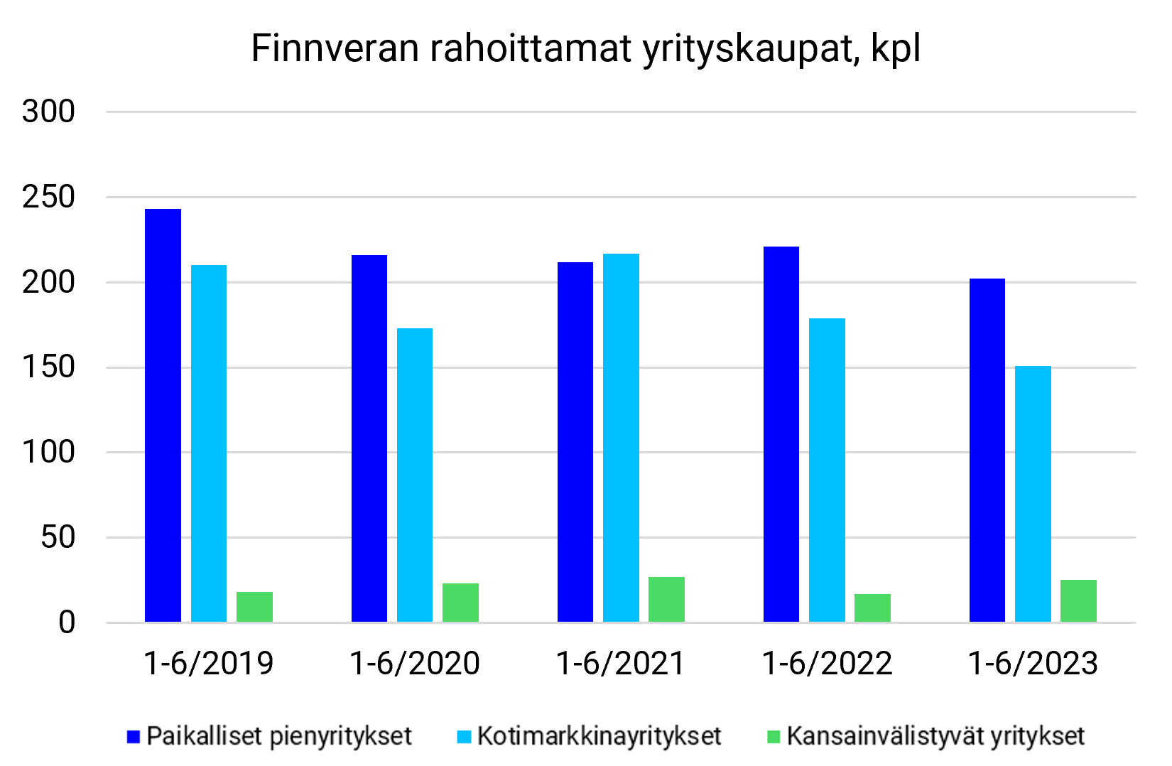 Myös isommissa kotimarkkinayrityksissä oli vilkkautta ja Finnvera rahoitti 152 yritystä (179) noin 42 miljoonalla eurolla (33).