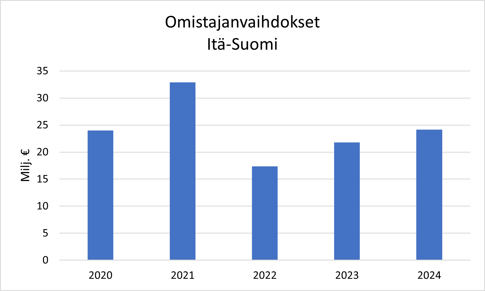 Vuonna 2024 Finnvera oli mukana rahoittamassa Itä-Suomen alueella 107 omistajanvaihdosta (123) ja myönsi niihin rahoitusta yhteensä 24 miljoonaa euroa (22). Eniten rahoitusta omistajanvaihdoksiin myönnettiin Pohjois-Savossa, yhteensä 13 miljoonaa euroa (6).