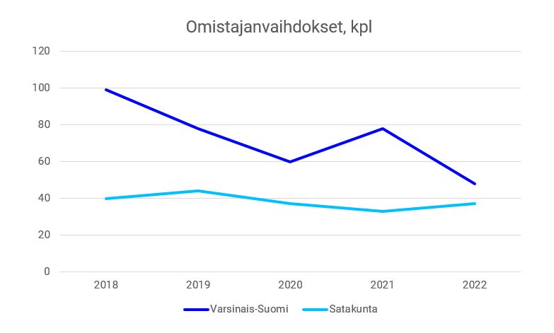 Maakuntien kehitys omistajanvaihdosten rahoituksessa erosi toisistaan vuonna 2022. Satakunnassa Finnvera oli rahoittamassa 37 yrityksen omistajanvaihdosta, ja määrä kasvoi edellisvuodesta 12 prosenttia. Satakunnassa rahoitettujen omistajanvaihdosten määrä on viime vuosina vaihdellut 30–40 kappaleen välillä, eli Finnveran kannalta rahoitettujen yrityskauppojen määrä on tavanomainen.
