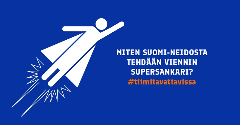 Team Finland auttaa suomalaisyrityksiä kansainväliseen menestykseen. Tarjoamme asiantuntijapalveluita, rahoitusta ja mahdollisuuden verkostoitua alan huippujen kanssa. Team Finlandin keskeiset toimijat Tekes, Finnvera ja Finpro työskentelevät nyt saman katon alla Helsingin Ruoholahdessa. Tiimiin saa yhteyden puhelimitse yhteisen palvelunumeron kautta sekä chatissa. Kysymyksiin vastataan syksyn aikana myös live-lähetyksissä, joissa koko tiimi on tavattavissa. #tiimitavattavissa tarjoaa maan terävimmät näkemykset ja parasta käytännön apua kansainvälistymiseen.