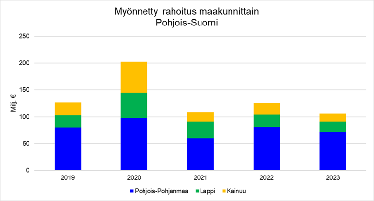 Vuonna 2023 Finnveran rahoitus pohjoissuomalaisille yrityksille laski 16 prosenttia yhteensä 105 miljoonaan euroon, kun määrä edellisvuonna oli 125 miljoonaa euroa. Kappalemääräisesti myönteisiä rahoituspäätöksiä tehtiin viisi prosenttia vähemmän kuin edellisvuonna.