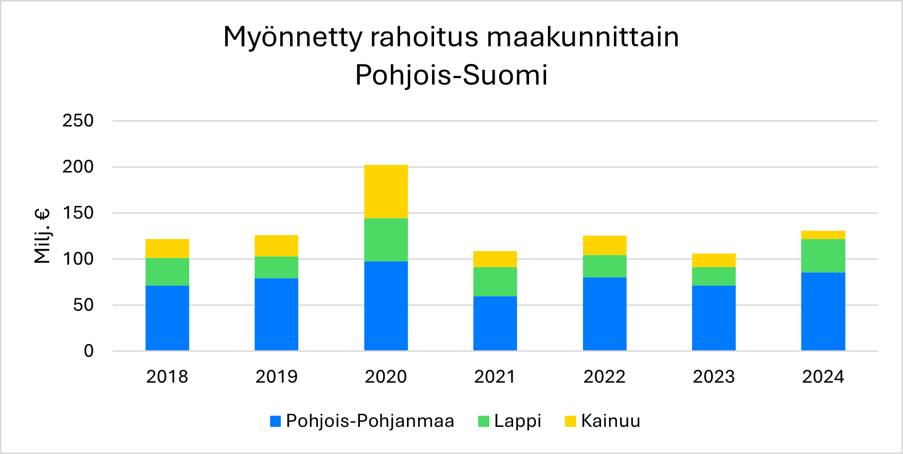 Pohjois-Suomen aluekatsaus 1–12/2024: Lapin rahoitus lähes tuplaantui, Pohjois-Pohjanmaan kasvoi viidenneksen, Kainuun laski