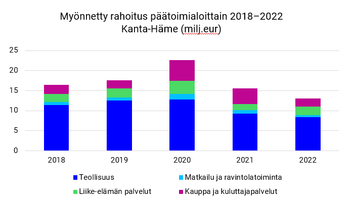 Kanta-Hämeessä rahoituksen määrä putosi alimmilleen tarkastelujakson aikana