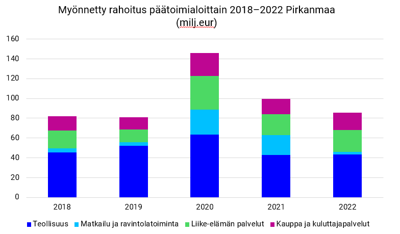 Toimialoista eniten rahoitusta myönnettiin teollisuuteen.